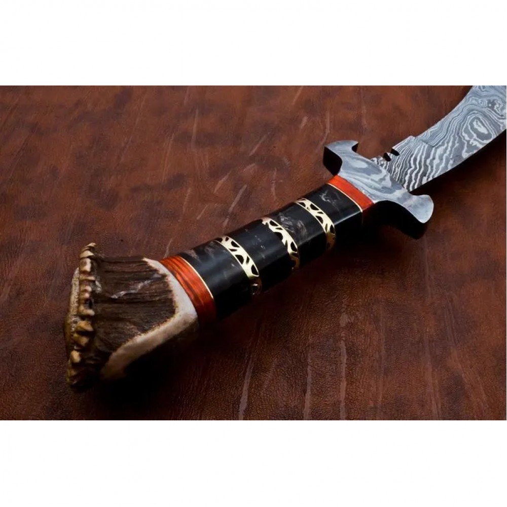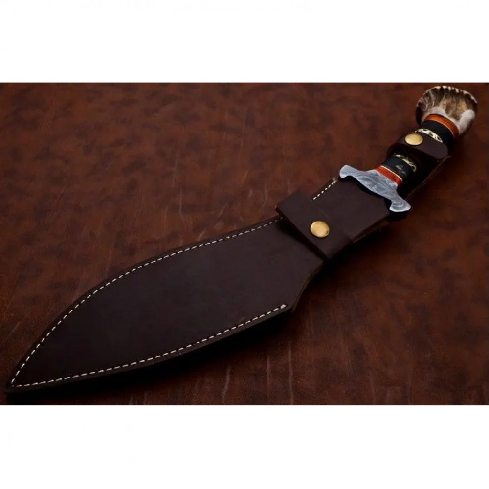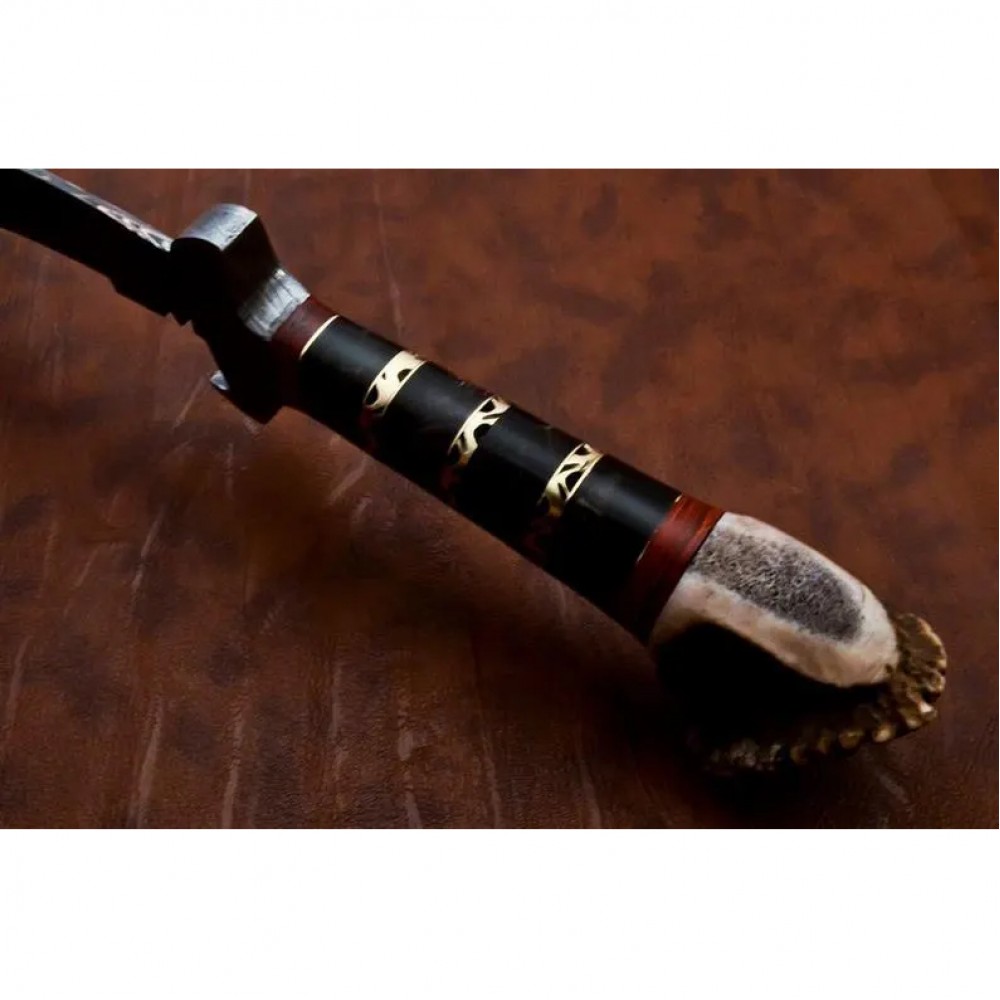 Handmade Damascus Kukri Knife – Stag & Buffalo Horn Handle with Leather Sheat