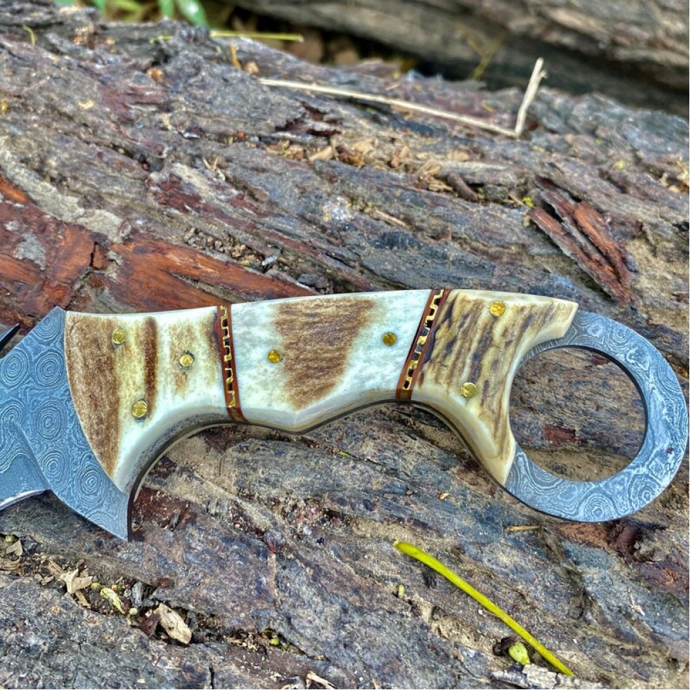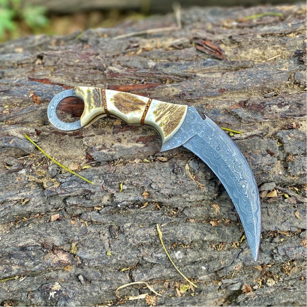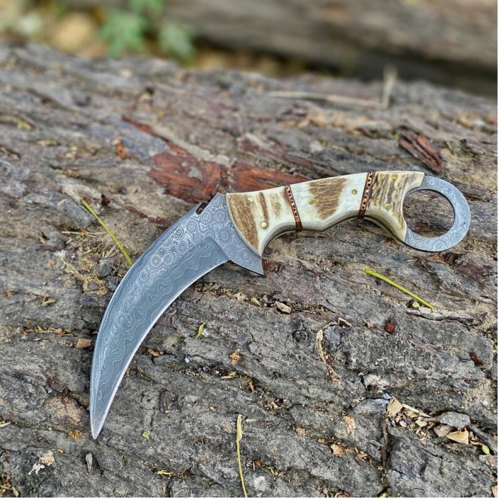 Handmade Damascus Steel Fixed Blade Karambit Knives