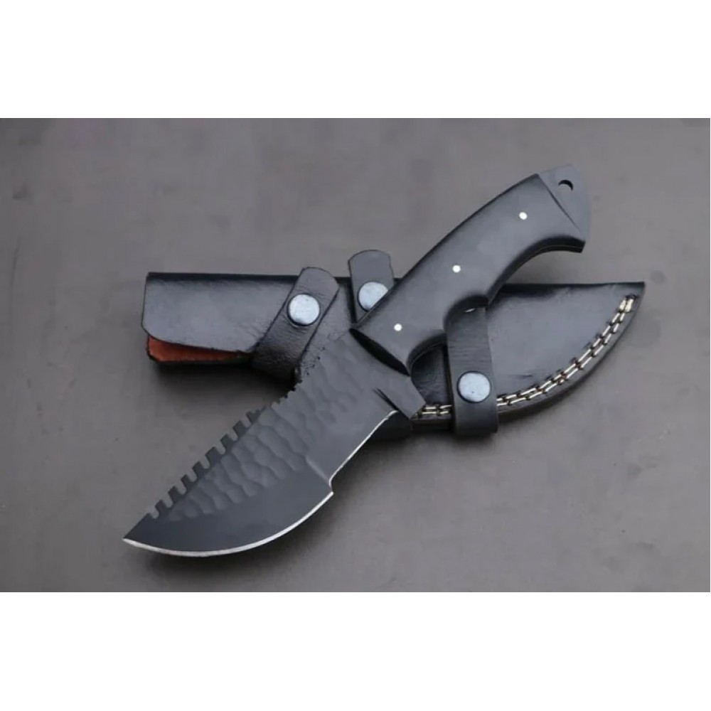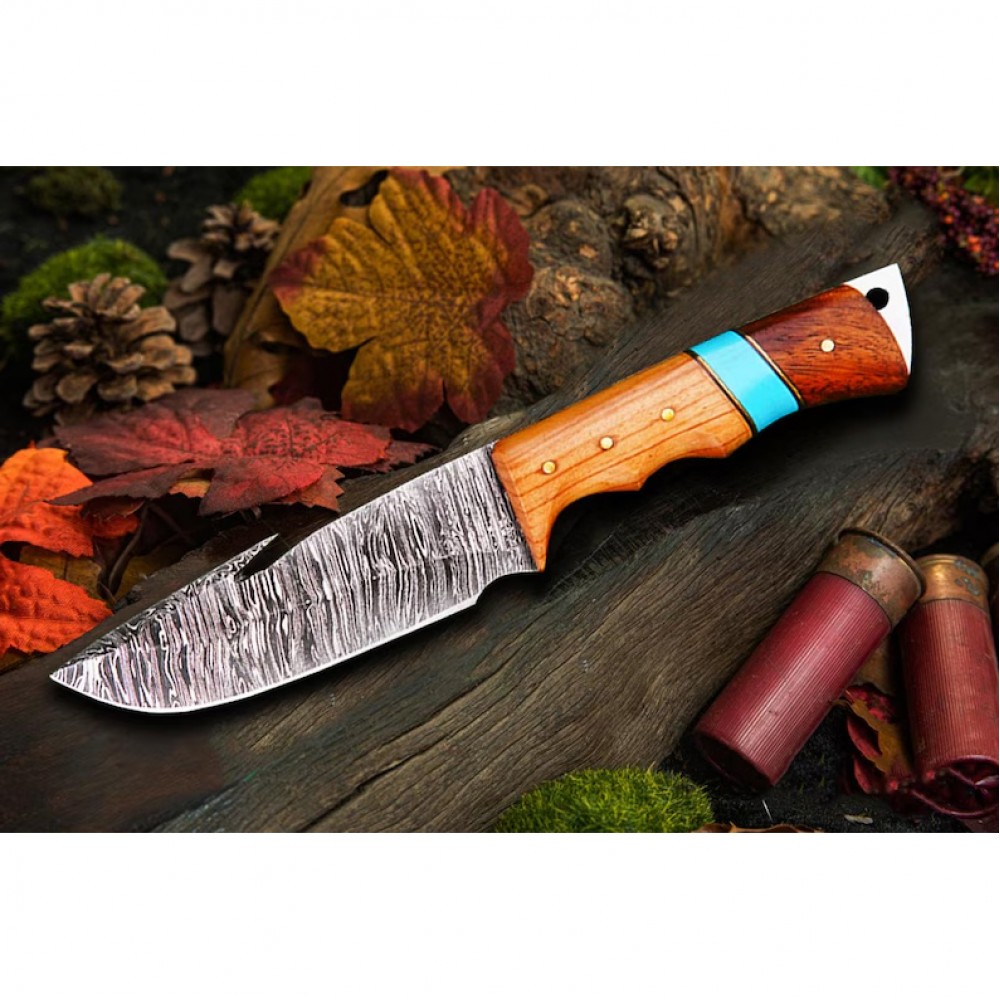 This hand-forged Damascus hunting knife is built for strength, beauty, and performance. Featuring a razor-sharp Damascus steel blade with over 200 unique layers, it’s a reliable tool for hunting, camping, fishing, and survival adventures. The ergonomic wood handle offers a comfortable grip, while the hand-stitched leather sheath keeps your blade protected and easy to carry.