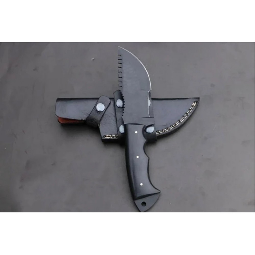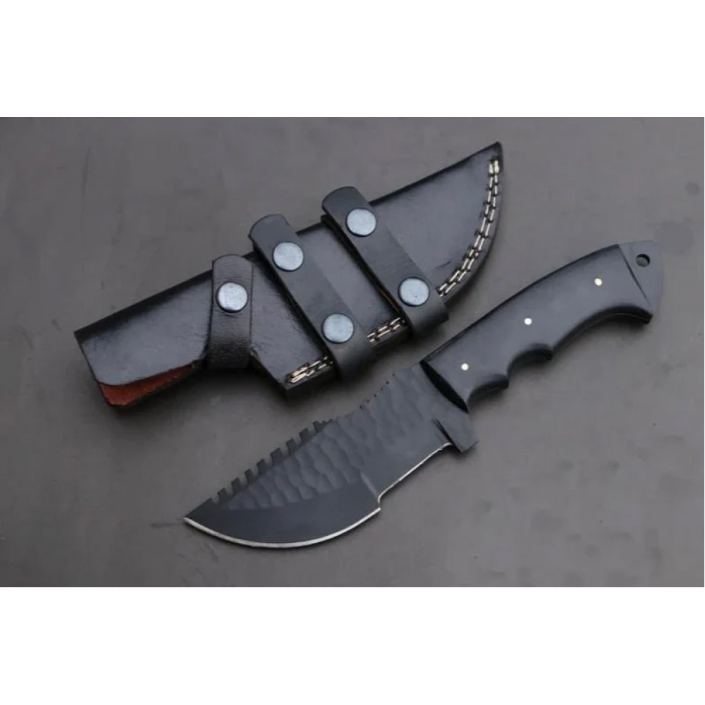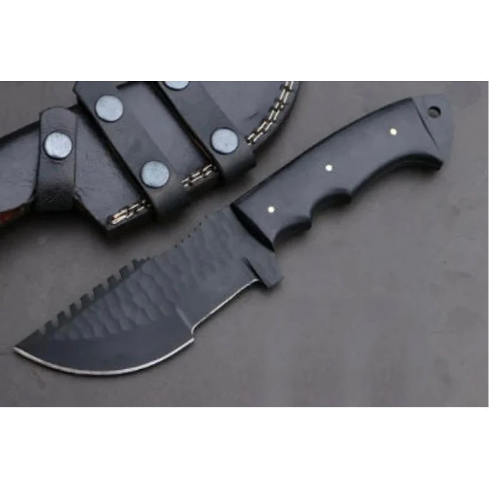 D2 steel Tracker Knife black coated with Beautiful Micarta handle included leather sheath