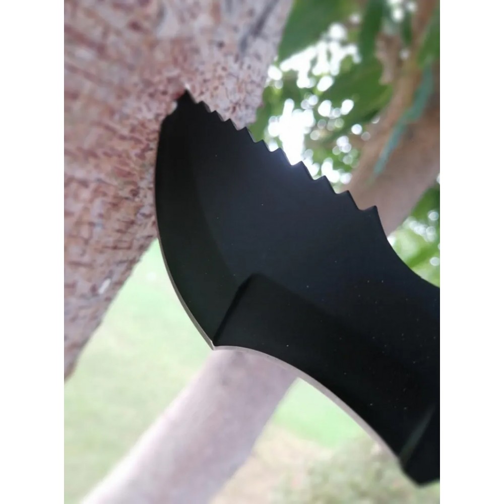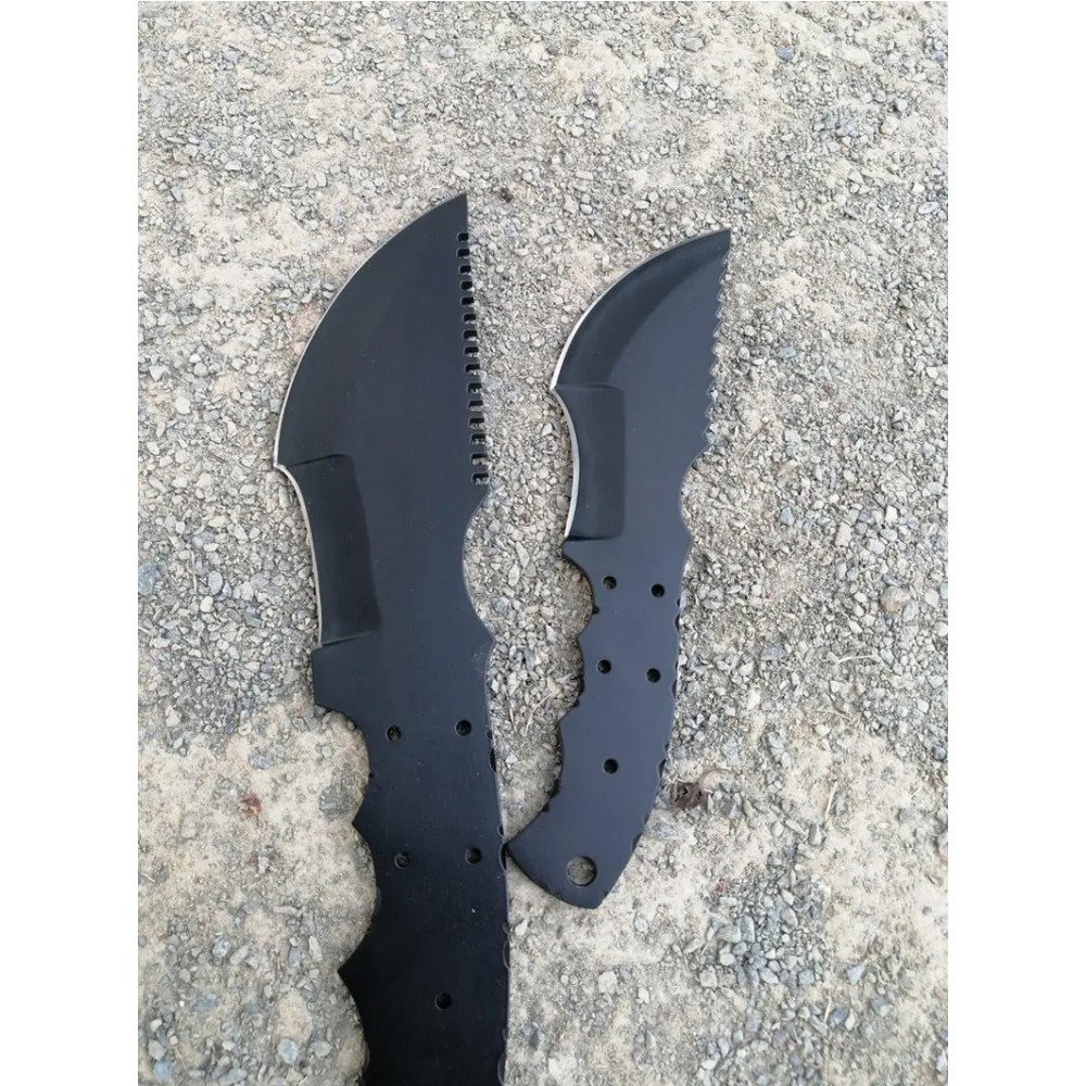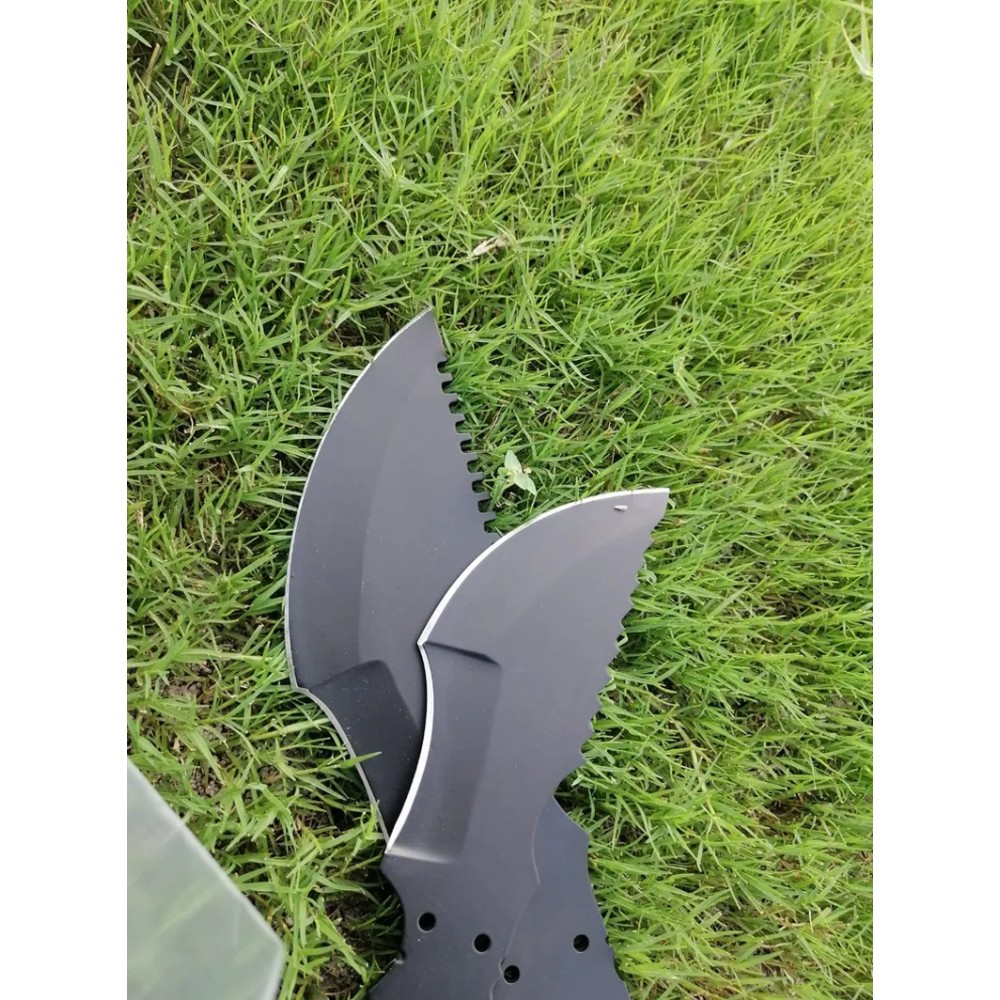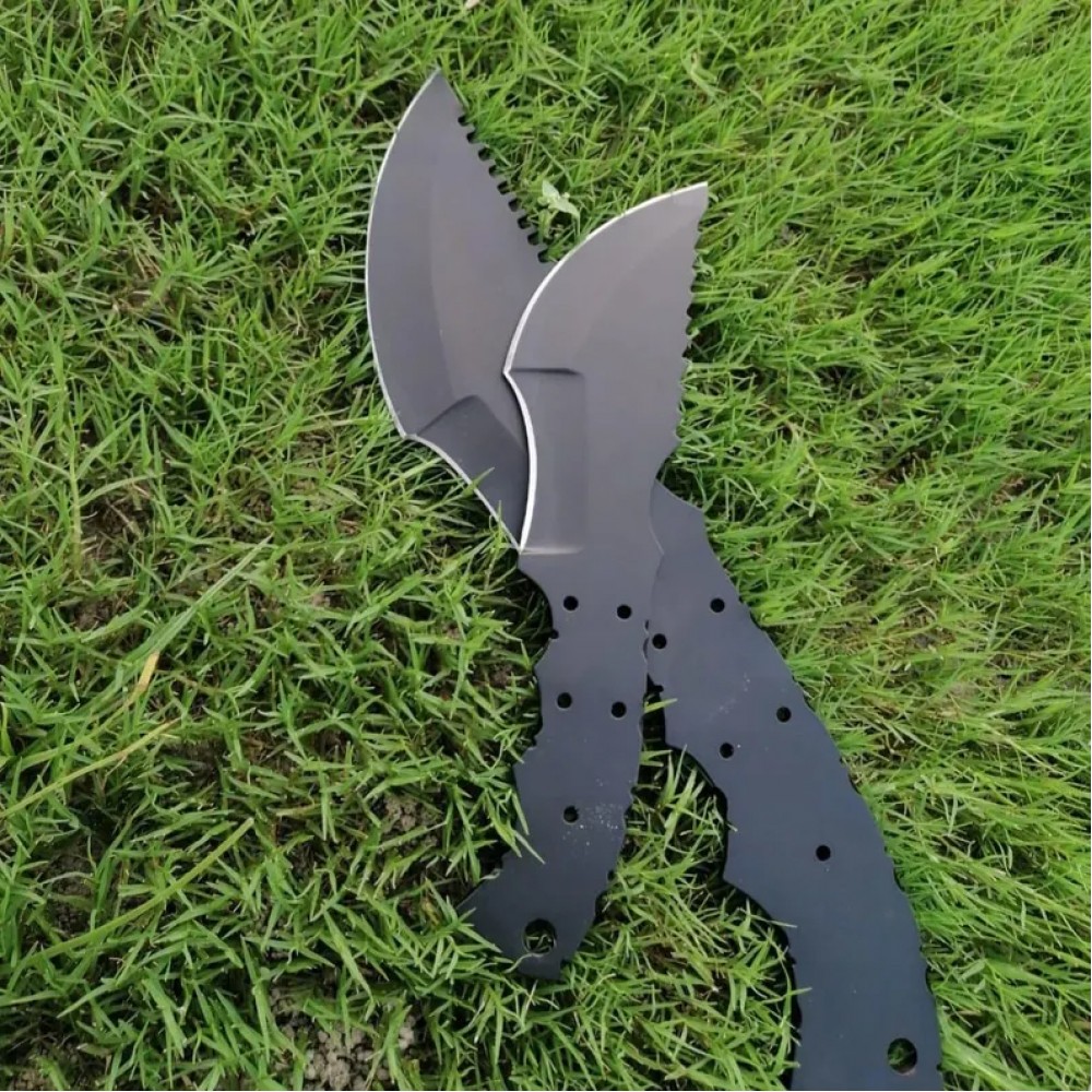 - Material: The blades are likely made of 1095 high-carbon steel, and matte black finish.