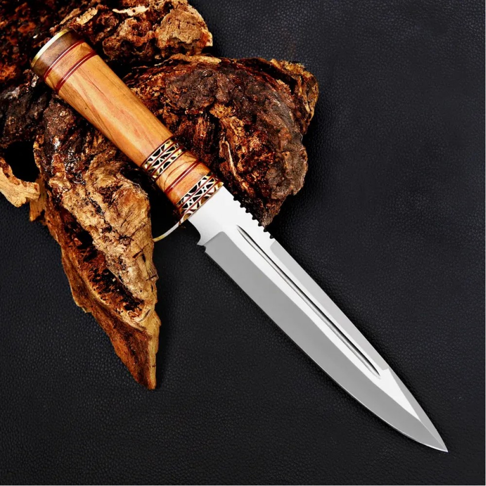 This handmade hunting knife is a blend of strength, beauty, and craftsmanship. Designed for outdoor enthusiasts, hunters, and collectors, the knife features a razor-sharp stainless steel blade paired with a solid wooden handle with brass accents for durability and comfort. Each piece is carefully handcrafted, making it unique and one of a kind.