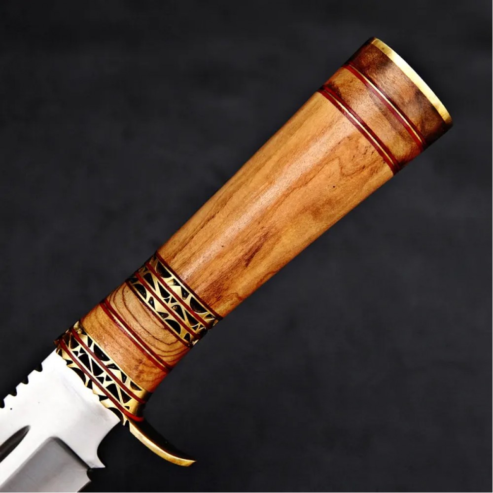 This handmade hunting knife is a blend of strength, beauty, and craftsmanship. Designed for outdoor enthusiasts, hunters, and collectors, the knife features a razor-sharp stainless steel blade paired with a solid wooden handle with brass accents for durability and comfort. Each piece is carefully handcrafted, making it unique and one of a kind.