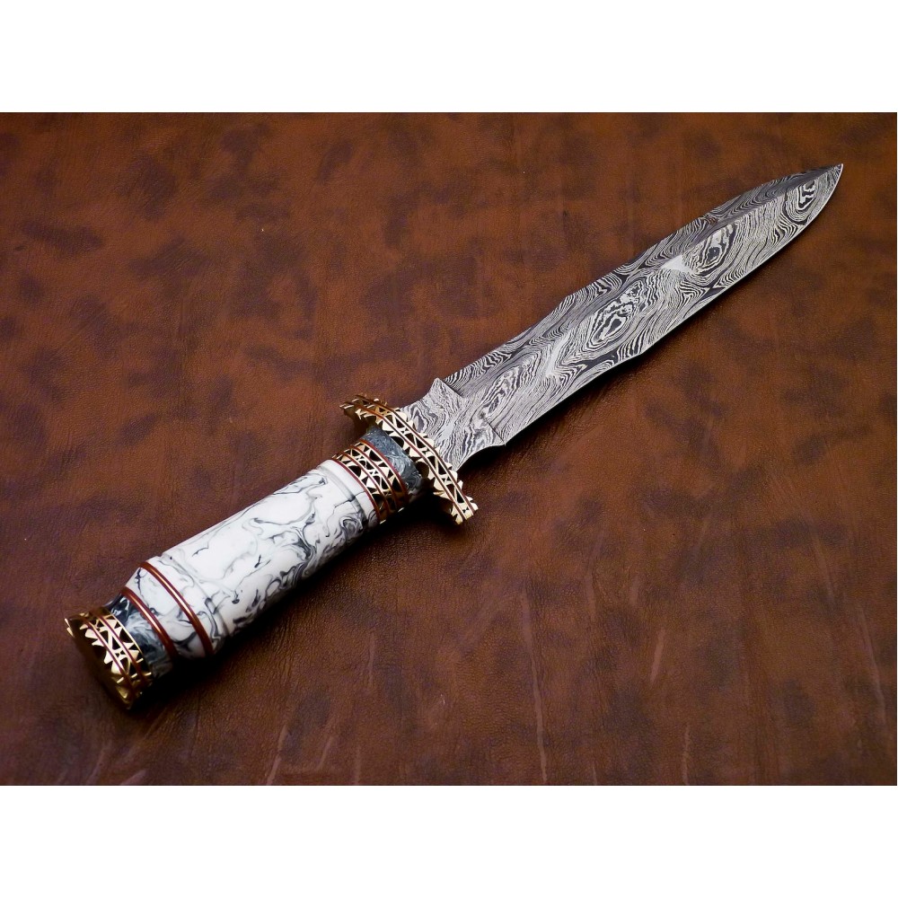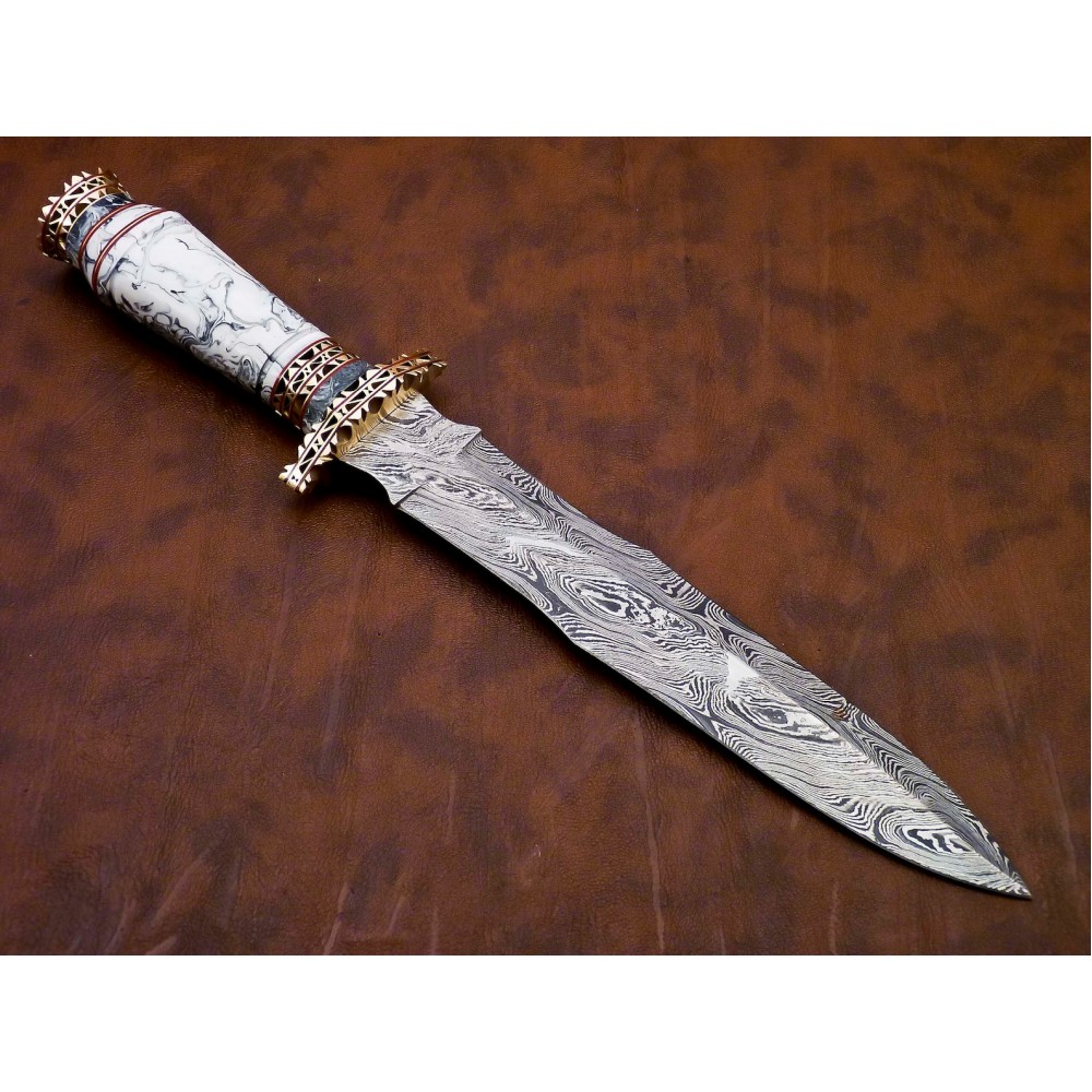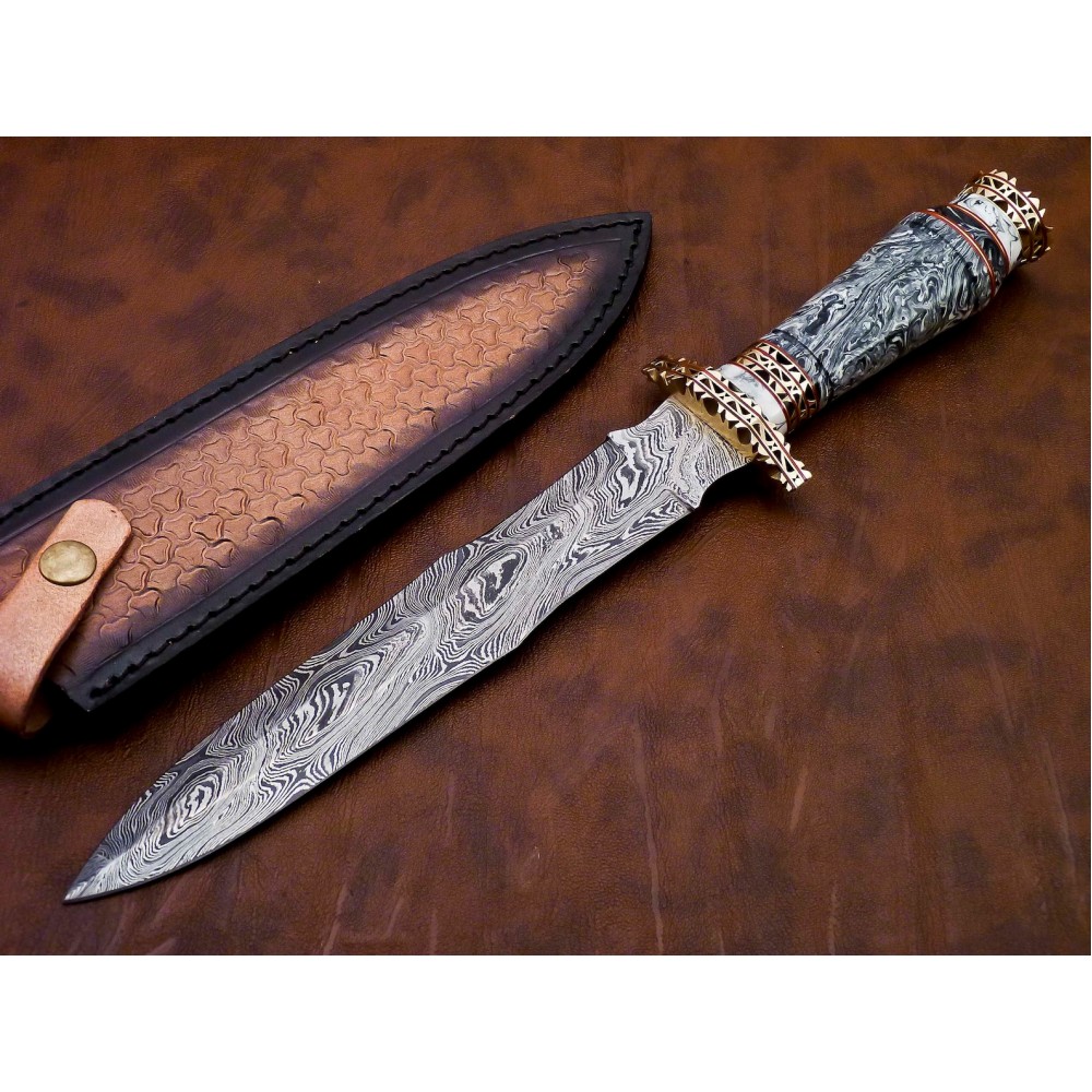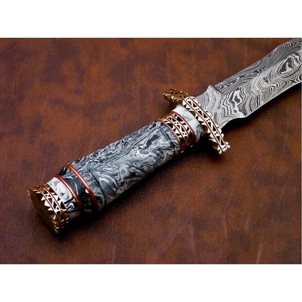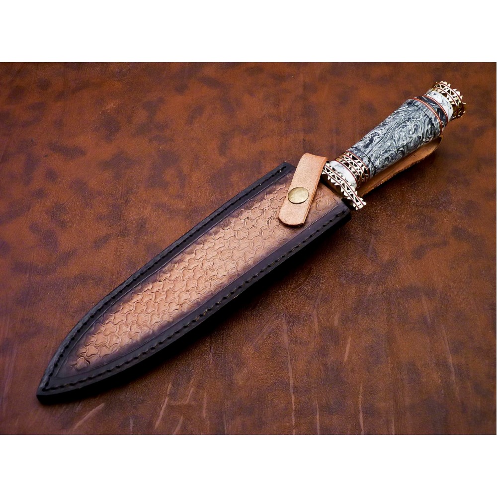 The Blade is Hand Forged with 1095 & 15N20 High and Low Carbon Steel with over 200 Layers. This blade is up to 58 HRC on Rockwell Scale which determines for holding sharpness for a long period and could also be use for Tough Work.