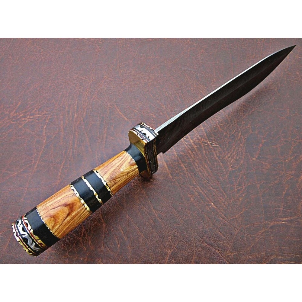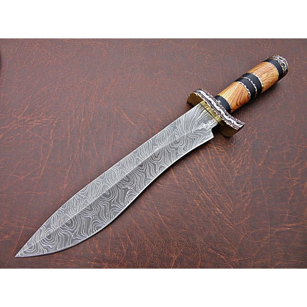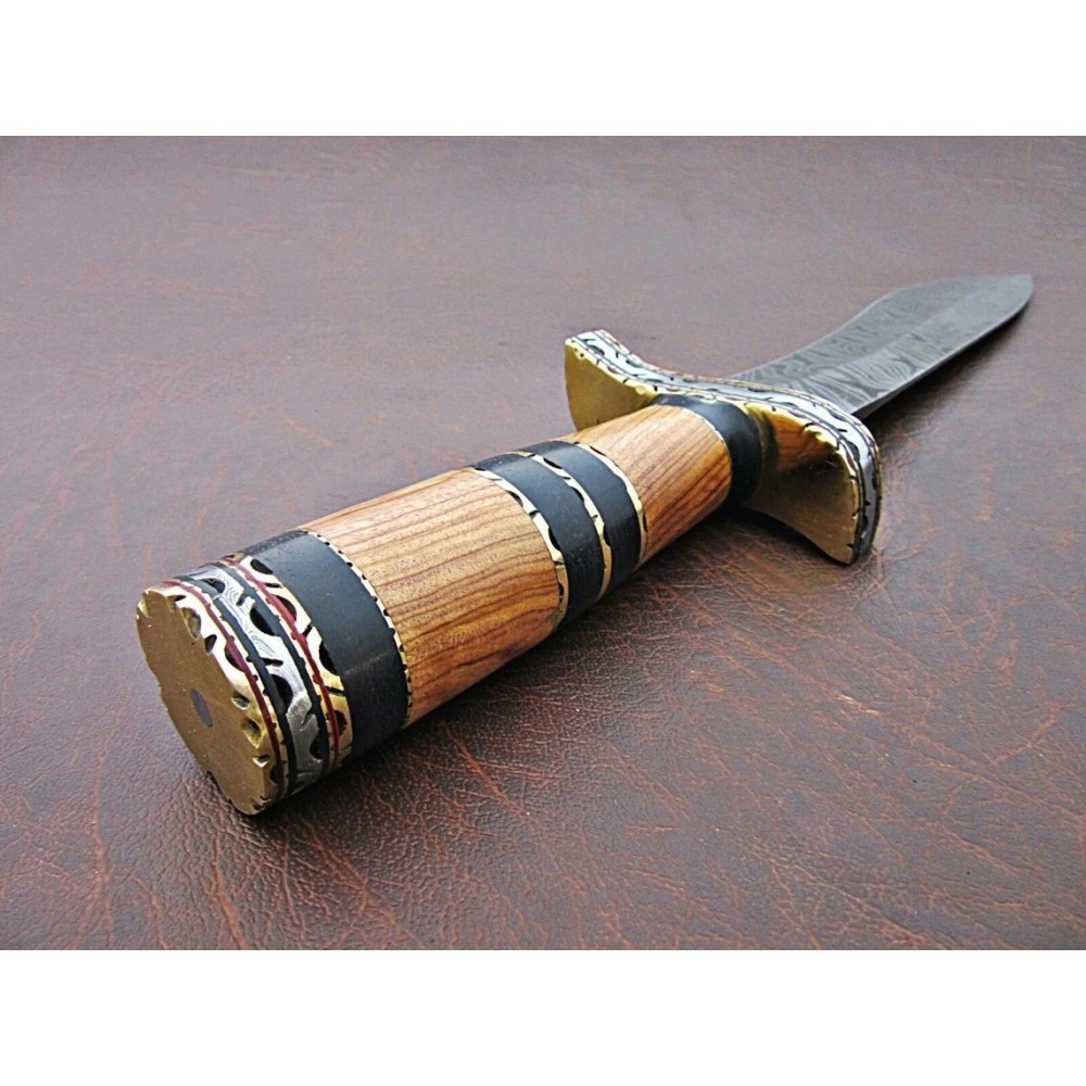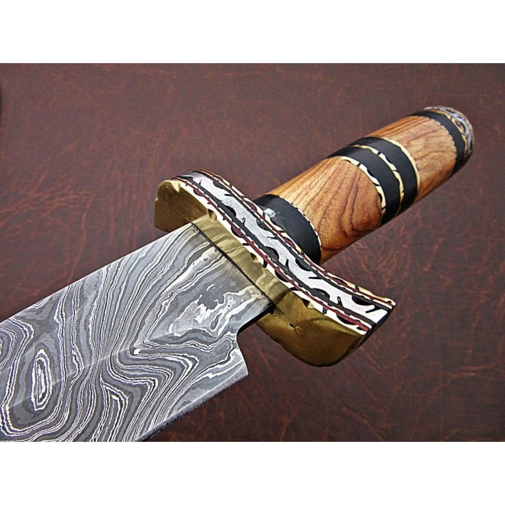 Handle Material: Natural Wood, Wood, With Brass Spacers, Damascus Guard and Brass Guard,