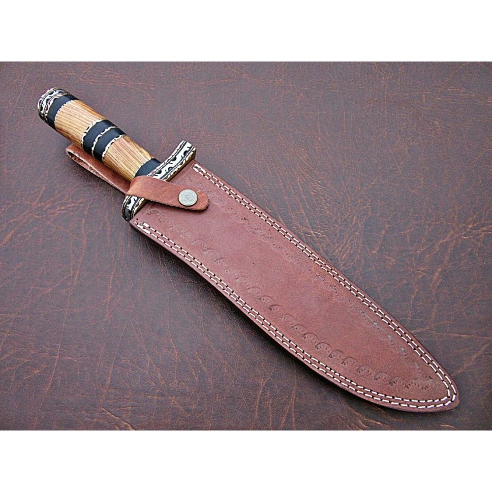 15'' Custom Handmade Damascus Steel Bowie Hunting Knife By Mortal Blades